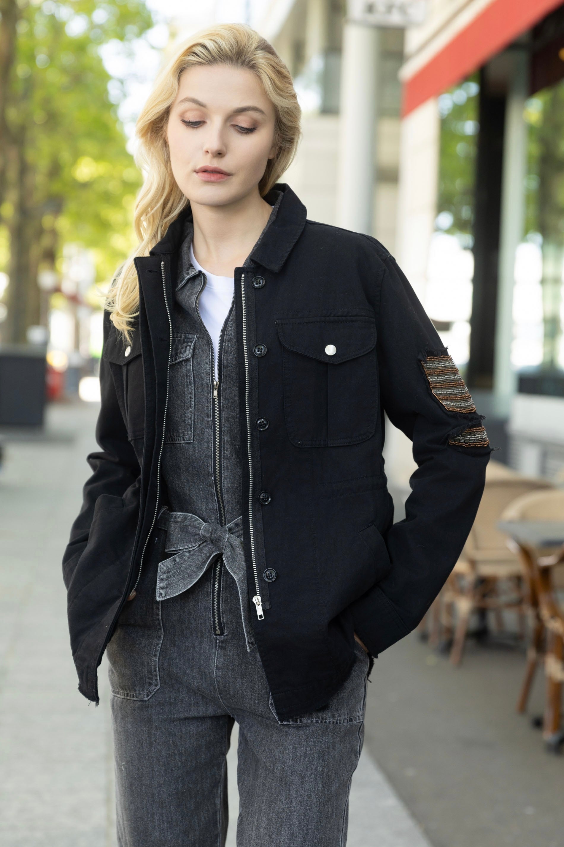 Chic et décontractée, cette veste au style affirmé allie poches pratiques. Confectionnée en coton de qualité. Une pièce à adopter d'urgence. À décliner en beige, kaki, noir.