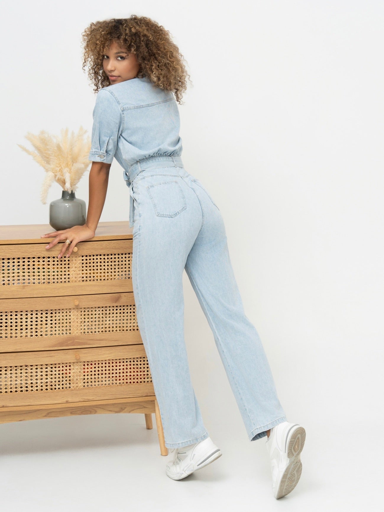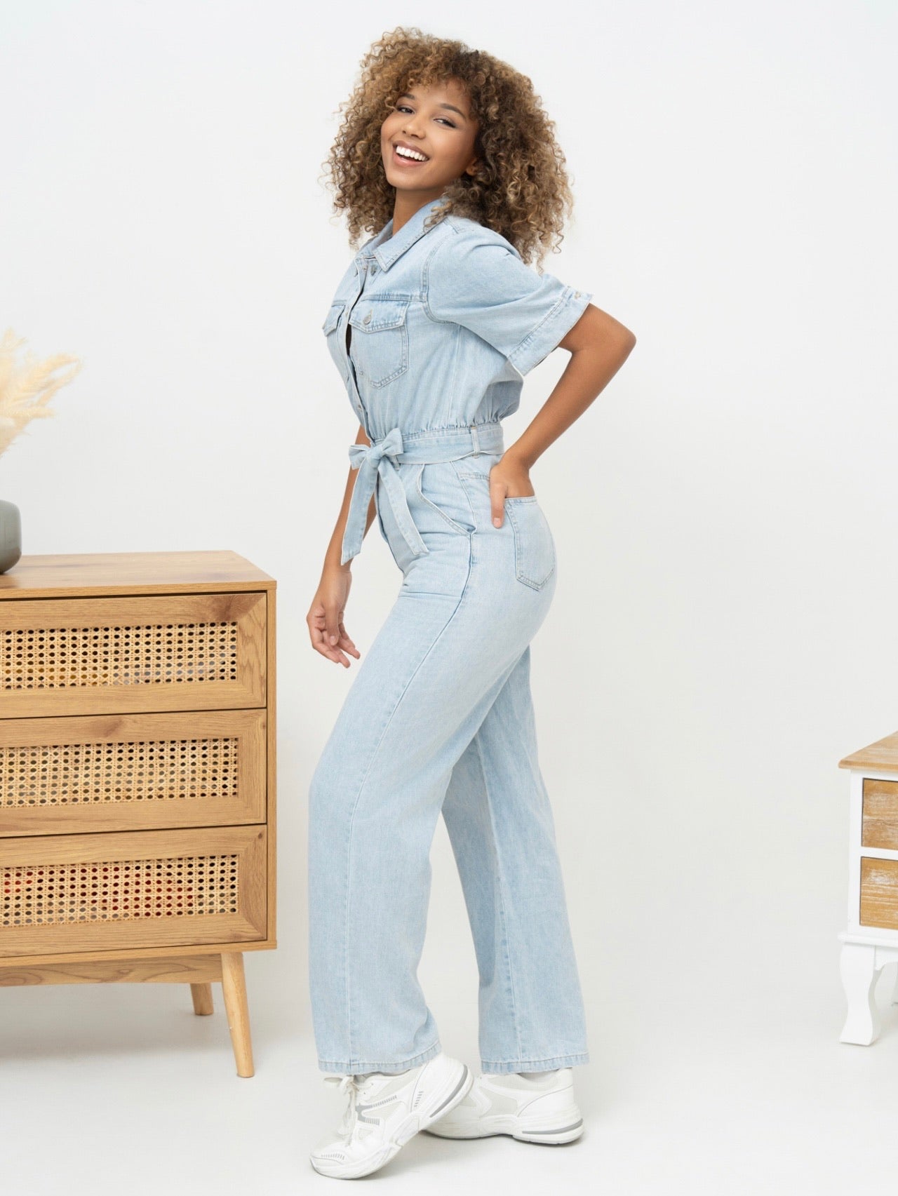 Pièce phare de la collection, cette pièce mode allie ceinture pour marquer la taille et poches pratiques. Confectionnée en coton de qualité. Une pièce à adopter d'urgence. Disponible dans ce coloris bleu jeans intemporel.