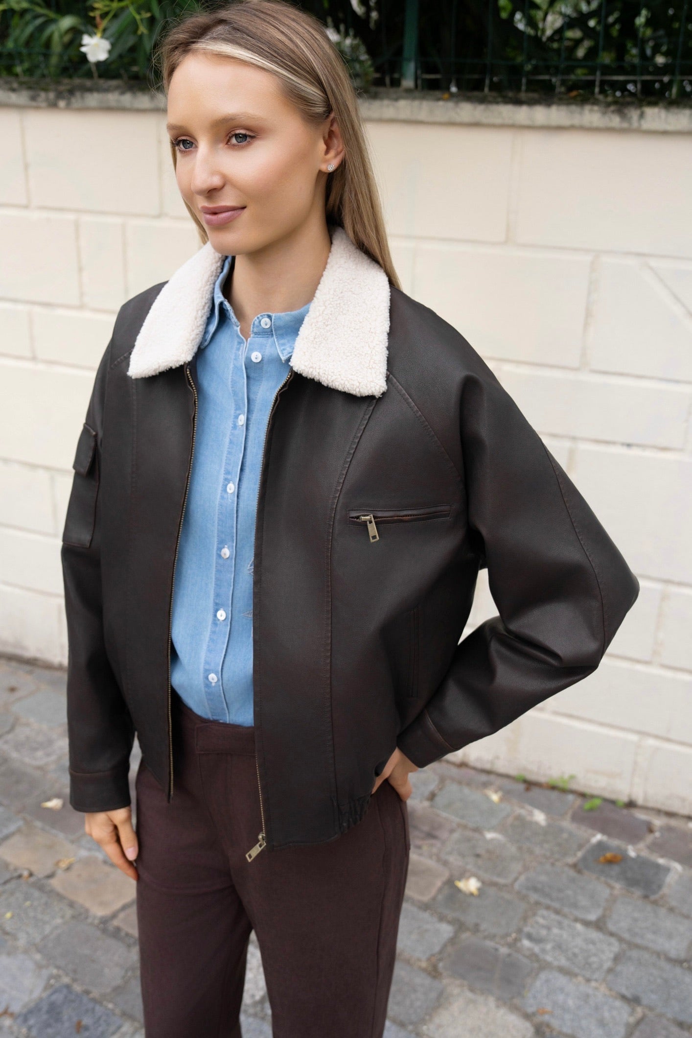 L'allure parisienne par excellence, ce blouson douillet à l'esprit cocooning allie doublure effet fourrure pour un confort absolu, coupe loose ultra tendance et poches pratiques. Matière soigneusement sélectionnée. Une pièce à adopter d'urgence. À décliner en bordeaux( burgundy), choco, noir.