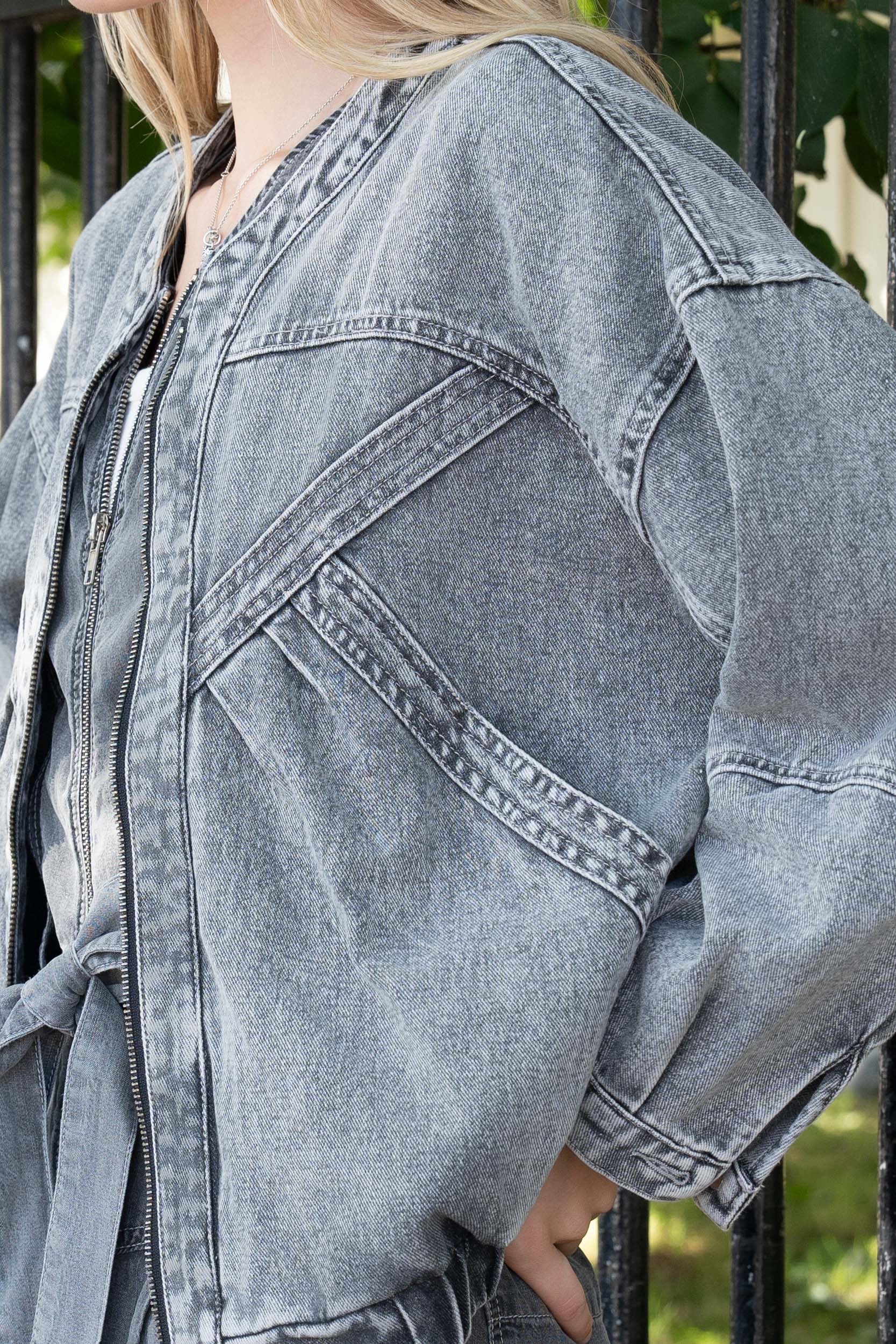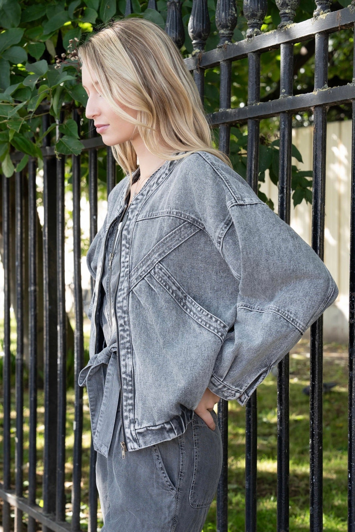 Le blazer revisité, cette veste au style affirmé allie coupe loose ultra tendance. Confectionnée en coton de qualité. Une pièce à adopter d'urgence. À décliner en bleu jeans, gris jean.