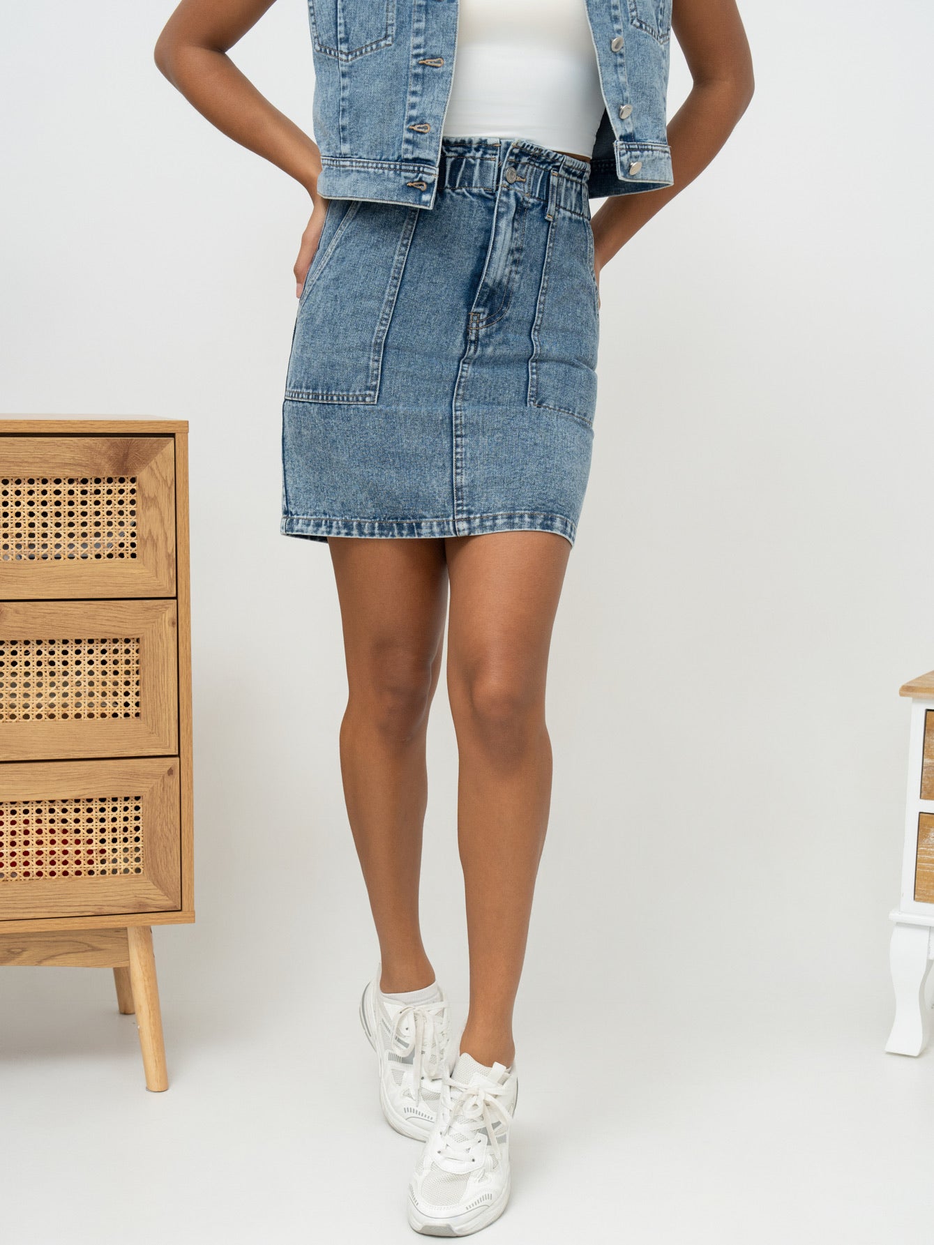 Légèreté et grâce, cette jupe féminine allie poches pratiques. Confectionnée en coton de qualité. Une pièce à adopter d'urgence. Disponible dans ce coloris bleu jeans intemporel.