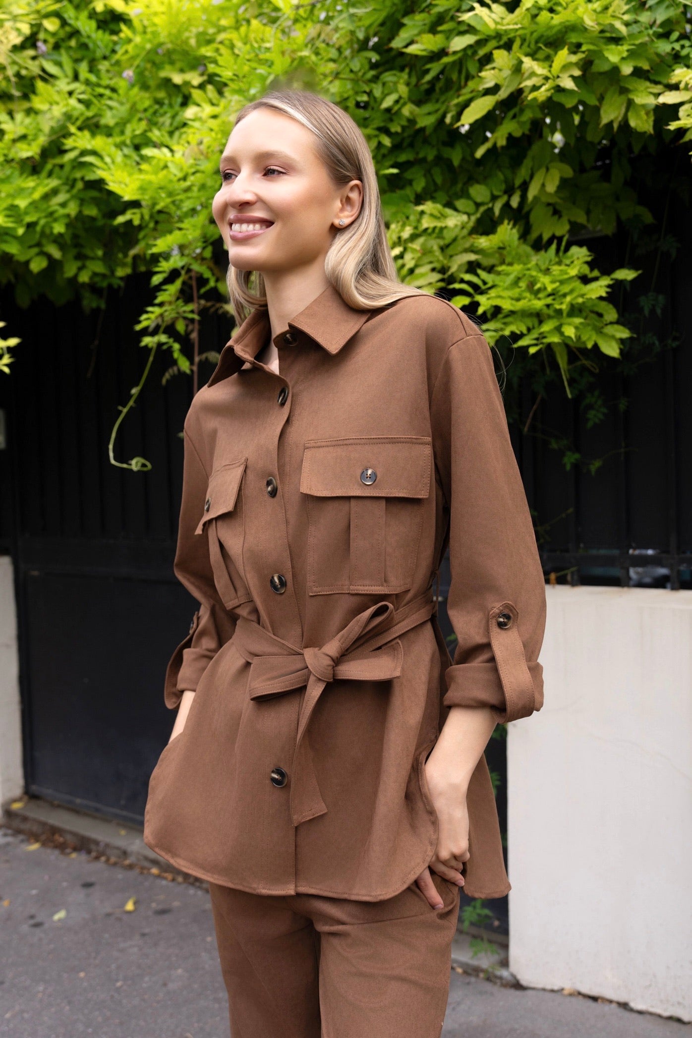 Le blazer revisité, cette veste à l'allure rock-chic allie ceinture pour marquer la taille et poches pratiques. Matière soigneusement sélectionnée. Une pièce à adopter d'urgence. À décliner en camel, noir.